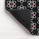 Black mousepad adorned with image of the atom. Cool gift for the science lover in your life!