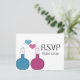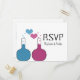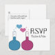 So fun and nerdy is this Science of Love Wedding RSVP Postcard which features a pair of beakers, one in blue and the other in fuchsia, with cute heart bubbles. This quirky and unique design is perfect for that nerdy couple wanting something memorable that matches their quirky personalities! Easy to customize, simply add the details of your wedding day in the spaces provided. Click on the "Customize It" button to find additional personalization options.