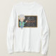 Cool and funny design featuring a science teacher holding a Chemistry flask and a stick pointing the blackboard with the EMC2 formula and various other formulas.
