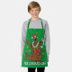 Great color and even though I ordered the kid size, it covers well enough to use during the holidays. I am not a big woman and prefer a shorter apron. I stand 5"6" and the length of the garment goes to mid-thigh. The tie straps fit well at my waist and even though there is no neck strap adjustment, the opening is plenty big enough. I am happy with the size and fit. I am sharing my apron with my 10 year old grandson, too! The color is vibrant and looks good, as shown on the website. The stitching looks strong and reinforced. Photographed is front side and back side of the apron, reinforced straps and coloring. My phone camera may not be the best at showing the details.