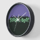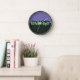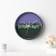 The size of the clock is dramatic and the abstract alcohol ink design is soothing and intricate at the same time. I chose the black frame that adds pop to the blue and gold design. The gold printing would be better in a slightly darker or larger font. I love it and I’m looking for just the right place in ny new apartment. I would recommend this clock for a personal gift or a present. I feel that the quality is excellent for the money! I’m a bit of a clock nut so I’m pretty particular about my purchases. The clock is larger in diameter than many if the clocks I have, so it stands out very well. I think a slightly darker printing color and a moderately larger size would best suit a professional decor or add more impact in a work place item.