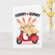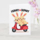 This design shows two cute, human-like bunny characters riding together on a retro motor scooter, centered on a bright white background 🐰. Both bunnies are drawn in soft creamy beige with pink inner ears and rosy cheeks, smiling with wide open mouths and shiny, friendly eyes. The front bunny grips the handlebars while the second bunny hugs close from behind, their faces angled toward each other in a way that suggests trust and closeness. The scooter is a strong red with smooth, rounded lines, giving the scene a light, breezy sense of motion. Above them, the phrase “HUNNY BUNNY” sits in black uppercase lettering, with a small red heart used as a decorative accent within the title 🌷. The long ears sweep backward as if caught by the wind, and thin whiskers add a gentle, affectionate touch to their expressions. Tiny details like the rosy blush on their cheeks and the glossy red scooter body stand out sharply against the white space.
