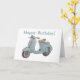 An original watercolor and ink painting of a scooter. The card has Happy Birthday! written across the front.