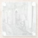 Glass photo coaster with a vintage scooter parked in front of a house in a cobblestone street in a city in Italy in stylish black and white.