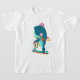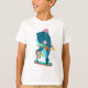 This cheerful illustration depicts a girl whale riding a scooter with a necklace made of corals and starfish sparkling around her neck, and a funny little helmet protecting her head. Her back is adorned with a floral tattoo, which creates a delicate contrast with the blue and turquoise shades of her skin.