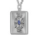 Medium square sterling silver necklace with an image of gold Scorpio and Pisces astrological signs with a sparkling blue sapphire on gleaming silver. See matching belt buckle, wrist watch and acrylic photo sculpture pin and keychain. See the entire Gemstones & Medallions Necklace collection in the ACCESSORIES section.