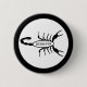 This awesome button features a digital art image of a black scorpion with big claws and a large sting on the tail curved above the top of its body, with the word Scorpio in bold black text inside the body of the arachnid. A fun design for people celebrating a Birthday born between October 24 and November 21 under the star sign of Scorpio.