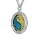 I chose gold plated so that the metal would not react with my skin oils and perspiration. But, I changed the necklace from the gold plated one to a sterling silver. My skin cells will tarnish the silver. But it will not look as bad if some portion of the gold plated necklace somehow became compromised. Zazzle did a find job turning the picture into a pendant for me. As you can see, the colors and the printing of the final product, match the preview. The picture I took is not very clear. But I am pleased with the product I received.
