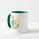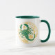 Scorpio sign of the zodiac in green and yellow on a two-tone coffee mug.