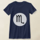 Scorpio symbol in black. NB This design can be customized the motif appears as a simple black symbol on light shirts, or as a black symbol in a white circle on dark shirts.