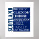 Subway art print features Scotland and 7 of its' largest cities in various fonts.