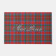 Elegant and interesting door welcome mat featuring the wonderful Scottish Clan MacBean MacBain tartan plaid, with custom name.