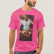 My 11 yo wore adult XL (5’7” 165#). The 8yo is small framed. She wore adult small and tied it in the back. Grandma wore adult large with long sleeve shirt underneath. Tall girl adult medium. Dark haired male adult large. Good quality dark Heather gray, Gildan brand shirt. -it was next up from basic choice and cost about $20 per shirt. Not too thick or thin. Washed and dried well, no major shrinkage. Not see-through. Can wear a bra under it fine. Screen print is just as shown and well done, front and back.