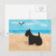Scottie at the Beach with Seagull Postcard