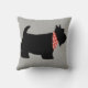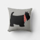Scottie Dog Red Scarf on Gray Throw Pillow