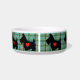 A ring of valiant little Scotties, showing that big heart, set against a blue and green tartan background.