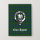 Stylish pin back button features Scottish Clan Agnew crest badge and customizable text on tartan background