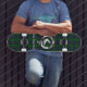 Stylish skateboard features Scottish Clan Armstrong crest badge and customizable text on tartan background