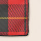 A scarf celebration featuring the design of the Scottish Clan Wallace red and black tartan plaid.
