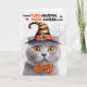 This Halloween witch is really an adorable gray Scottish Fold cat and it looks wonderful in orange and black on this fun feline filled humorous greeting.
