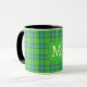 Scottish green and blue plaid tartan monogram mug .
