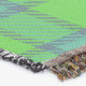 A quality printed throw has its advantages. This is a much finer weave throw than its loopier cousins, and though lighter, it is worth the investment for custom room accessorizing. The back is much prettier than the typical brown, and the fringe on the long sides very vivid, the selvage nicely done. Before photographing, I washed the throw in cold water, delicate, with a thicker woven throw the same size. On tumble dry low, this throw was dry in half the time as the other. This is a very practical quality if you use throws for furniture covers or to wrap up in frequently. The sleekness of the fabric makes it a great layer for accenting or protecting without the feeling of sitting on too much stuff. Perfect for napping or when you feel a light chill coming on. The color printing is beautiful and on this fabric, matched the design and color of my Photoshop image. This is an advantage for blending room fabrics and colors. The fringe on the short sides prints the colors from the design image and therefore varies from the side fringe. I streaked a white fractal line through the plaid pattern to give the illusion of weaving. This printed as crisp as an illusory thread, and put some white in the short side fringe, showing another advantage of print vs loomed- for artistic purposes, line lines, detail, and color integrity can be planned and preserved. My loomed throws have color limitations and more of a needlepoint texture. Print throws reproduce an exact image. The throw felt a little stiff straight out of the package, but this went away in the first delicate wash. Of course I searched the wash water for ink or bleeding and there was none.