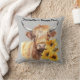 Scottish Highland Cow with Sunflowers. Editable Throw Pillow