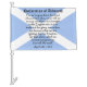 Fly the flag for Scotland on your way to the next demo and rally for Scottish independence. The design features the Scottish flag, also known as the Saltire, with the white St Andrew's Cross on a blue background on both front and back. On the back are the stirring words from the Declaration of Arbroath: 'For as long as but a hundred of us remain alive, never will we on any conditions be brought under English rule. It is in truth not for glory, nor riches, nor honours that we are fighting, but for freedom - for that alone, which no honest man gives up but with life itself.' The declaration of Scottish independence was signed on April 6th, 1320, at Arbroath Abbey, six years after Robert the Bruce defeated the English at Bannockburn in 1314. The flag on the back is a light sky blue colour.