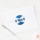 Round sticker with a textured Scottish flag and the word 'yes' - show your support for a Yes vote in the Scottish Independence Referendum!