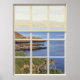 A great way to create a window view on your wall, this faux frame and blind creates a trompe l'oeil effect with the beautiful scenic ocean and island view beyond. The scene featured here is an island in Scotland, with distant hills visible beyond the beautiful blue water of the sea in the foreground. It's easy to imagine you are living in the Scottish Isles with the fresh air and lazy sounds of a summer day outside! Sized big so that it will look like a real window.