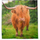 This shower curtain has a beautiful Scottish long-horned cow pictured on it.