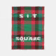 "SIT" and "SQUARE" Text: These words introduce a textual element, creating a unique juxtaposition with the traditional tartan.