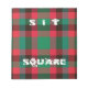 "SIT" and "SQUARE" Text: These words introduce a textual element, creating a unique juxtaposition with the traditional tartan.