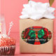 SCOTTISH TARTAN AND RED GREEN BOWS CHRISTMAS PARTY OVAL STICKER