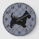 Keeping time for you, just another service of the versatile Scottie in your life! In addition to clocks, created from our original paintings, these Scotty Dog images are available in seasonal designs on clothing, novelty and gift items of all sorts! Please take a look through our Scottish Terrier Shop (and more! We have Shops for many dog breeds with links posted in the Shop). Buy for yourself or as a special treat for your friends!