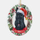 This sophisticated ceramic Christmas ornament features a watercolor of a cute black Scottish Terrier in a Santa hat, surrounded by holiday greenery, pinecones and berries, with a red banner with your pet's name (or change to Merry Christmas). You can fully personalize this design by changing the greeting and year on the back in an elegant font. This is a stylish, yet inexpensive, custom Christmas ornament, and it's perfect for Scottish Terrier lovers, Terrier fans, scotty enthusiasts, dog lovers, and pet lovers.