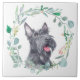 Scottish Terrier Dog Watercolor Wreath Ceramic Tile