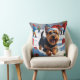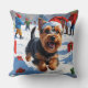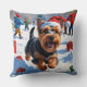 Scottish Terrier Running Snow with Christmas Hat Throw Pillow