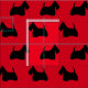 Repeating silhouette of a Scottish Terrier dog with red background.
