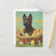 Celebrate Easter with the charming Scottish Terrier in this vintage-style postcard. Featuring the beloved Scottie dog surrounded by colorful Easter eggs, blooming spring flowers, and festive holiday accents, this design captures the timeless charm of the breed. Perfect for collectors, dog lovers, and fans of nostalgic holiday art, this postcard is a delightful keepsake for Easter.