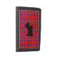 A red plaid pattern decorates this scotty wallet. The design is from original art.