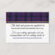 Stylish Scottish wedding tartan plaid enclosure information card done in white with a stripe of the regency blue clan Dundonald tartan and a gold band runs along the top, of the card, with the plaid covering the backside. Personalize all text to read what you want. Matching wedding products are available.