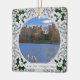 Linlithgow Palace was home to the Royal Stewart, later Stuart, family in the 15th and 16th centuries. Mary Queen of Scots was born here. It is located in West Lothian, between Edinburgh and Stirling. Owned and maintained by Historic Environment Scotland, the site is open to the public year round. This stunningly bright photograph features the structure across the loch graced by white swans. The photograph is framed by a vintage Christmas look of painted metal, decorated with holly leaves and berries. On the back, in a red script font, is a brief history of the structure and family. No matter how you spell your Stewart/Stuart name, make this ornament your own by changing the spelling in the medallion on the front and in the back story, if you wish. Remember to change the year date. "Linlithgow Palace" by SR Photies is licensed under CC BY-SA 2.0 It has been modified for color, contrast, size, resolution and additives, including text.https://creativecommons.org/licenses/by-sa/2.0/?ref=ccsearch&atype=rich