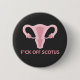 A pinback button design with a message to the Supreme Court of the United States and the overturning of Roe v. Wade. Pink uterus graphic with "f*ck off SCOTUS" text