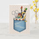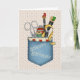 A country cloth background, and a folk-art design showing a pocket with all the tools a scrapper needs. "Scrappy Birthday" on the pocket makes this the perfect card for a Scrapbookers´birthday! Add your personal message to make it truly unique!