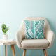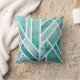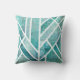 5 star quality pillow featuring scratch, abstract design is cool turquoise and white.