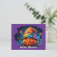 scray jackolantern with birthday hat pyschedelic postcard