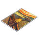 Famous work of Expressionist art by Norwegian painter Edvard Munch depicting screaming man on bridge overlooking blue river against orange landscape. Notable for its bright color palette of blood red orange, navy blue, sky blue, and indigo and for its repeating patterns of bold color swirls. Four versions of painting exist, one in the National Gallery in Oslo, Norway. Various theories exist as to the inspiration for this masterpiece of Expressionism. One theory posits Munch was influenced by his proximity to a local lunatic asylum where his sister was hospitalized. Another credits a visit to The World’s Fair of Paris where he viewed an exhibit featuring a Peruvian mummy. The work has inspired countless subsequent works in the nihilist, existentialist, modern, and post-modern schools of art and literature.