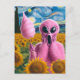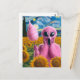 Screaming Alien Holding Cotton Candy Sunflowers Postcard