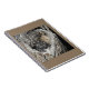 This notebook features my scratchboard drawing of a Western Screech Owl hunkered down in a tree cavity. I took the reference photo at the San Pedro River Preserve in Arizona.